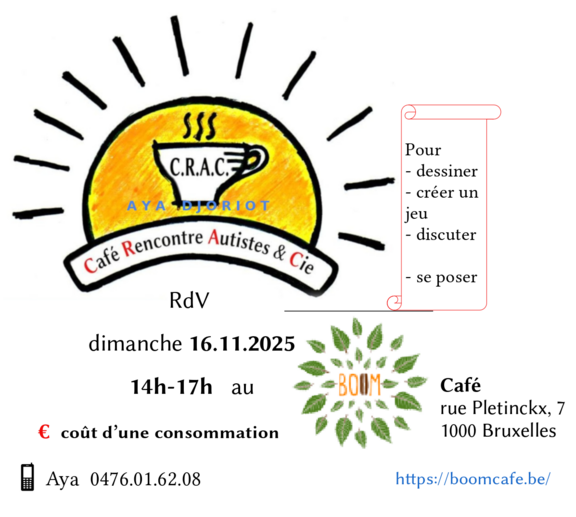 Bienvenus au CRAC dimanche prochain. La rencontre autistique a lieu depuis 2014... Voir Affiche
